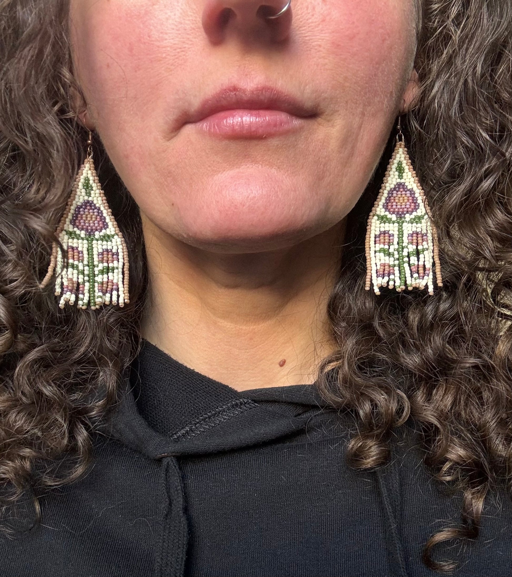 Each pair takes over four hours to create - stitched one bead at a time with care and intention. From the detailed floral design to the flowing fringe, these earrings are truly wearable art.